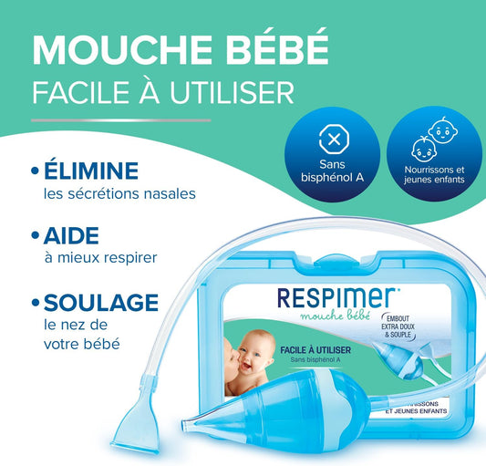 Mouche Bébé - Evacuer L'Excès De Mucus - Rhume & Rhynopharyngite - Facile À Utiliser - Nourrissons Et Jeunes Enfants - Sans Bisphénol a - 5 Filtres Jetables Hygiéniques - Fabriqué En France